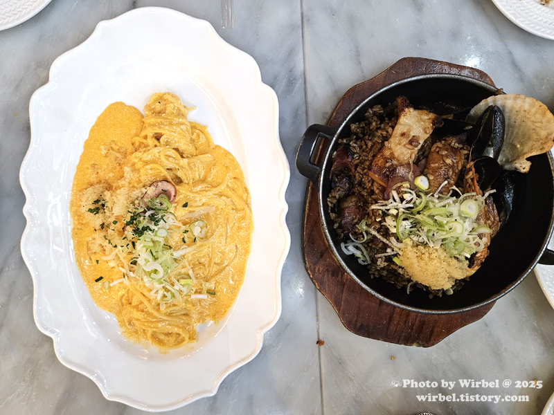 이날 음식 주문은 늦게 들어갔지만 파스타와 빠에야는 10분 만에 빠르게 나왔습니다.