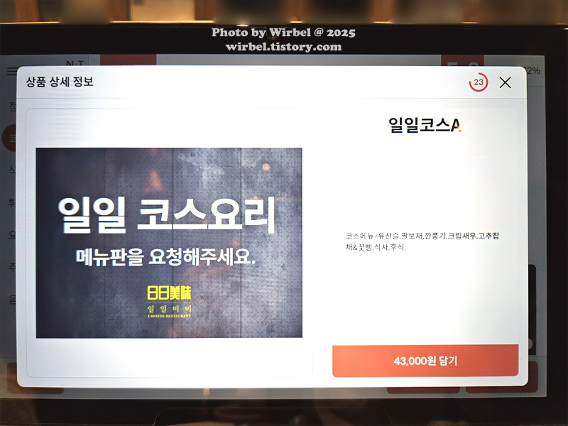 이날 먹은 일일미미 중식 코스 6가지 요리입니다.