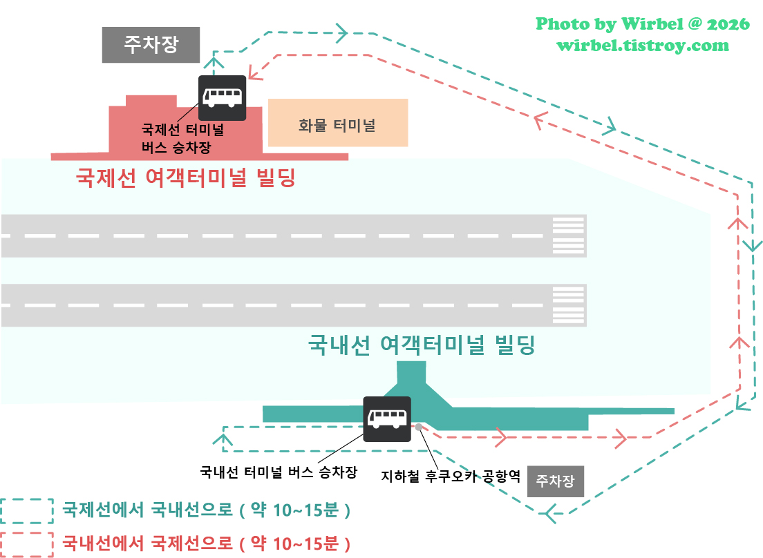 후쿠오카공항 국제선 터미널에서 국내선 터미널로 이동합니다.