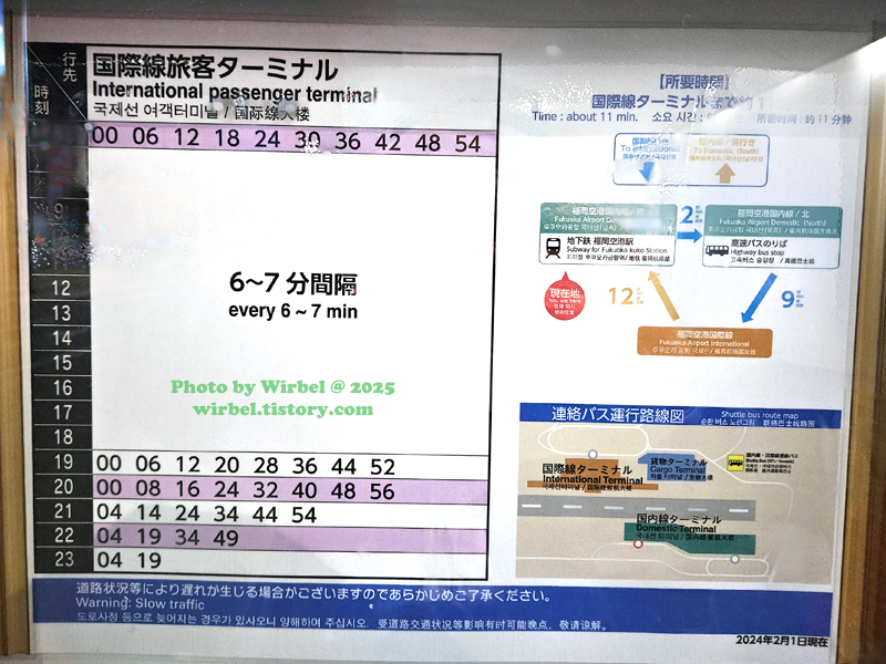 2024년 기준 후쿠오카공항 순환버스는 국제선에서 후쿠오카공항역으로 바로 이동하고 12분 정도 소요된다고 나옵니다.