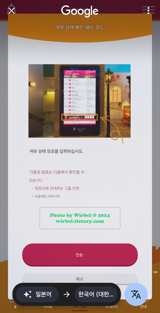 입장 티켓 혹은 키오스크 아래에 있는 숫자 4자리를 입력하면 됩니다.