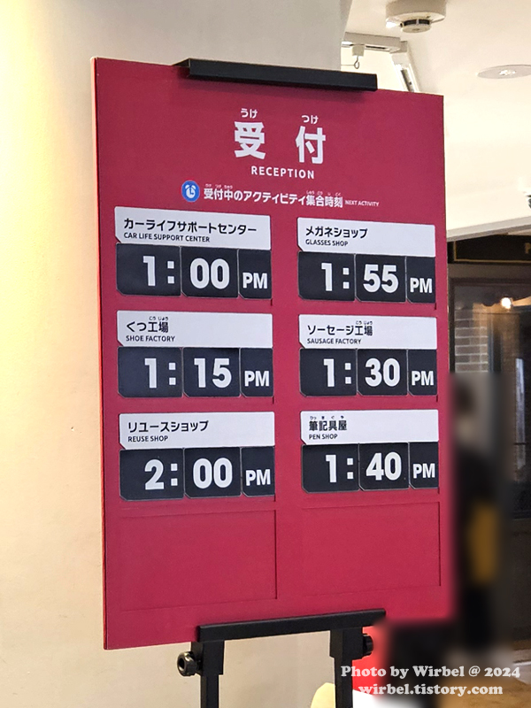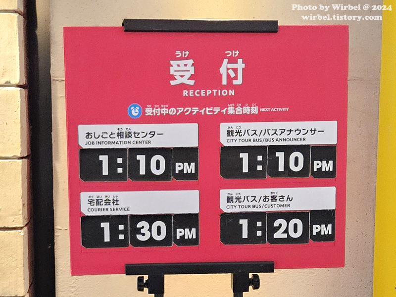 한국 키자니아는 체험시설 앞에서 대기 등록을 하지만 일본 키자니아는 리셉션에서 대기 등록을 합니다.