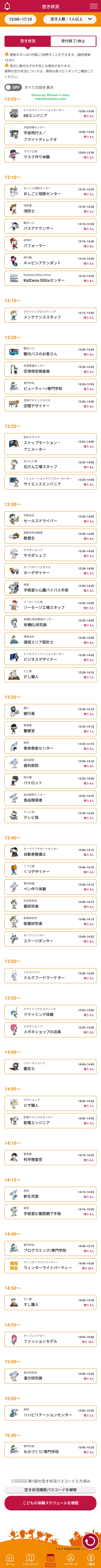 일본 키자니아 앱을 설치해서 확인하는 것이 가장 편리합니다.