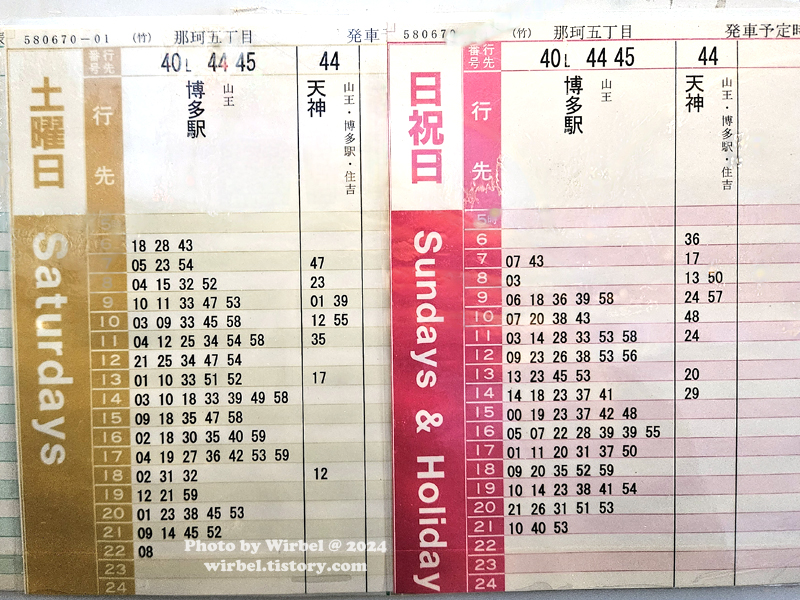 2024년 기준 후쿠오카 라라포트에서 하카타역 가는 버스 시간표.