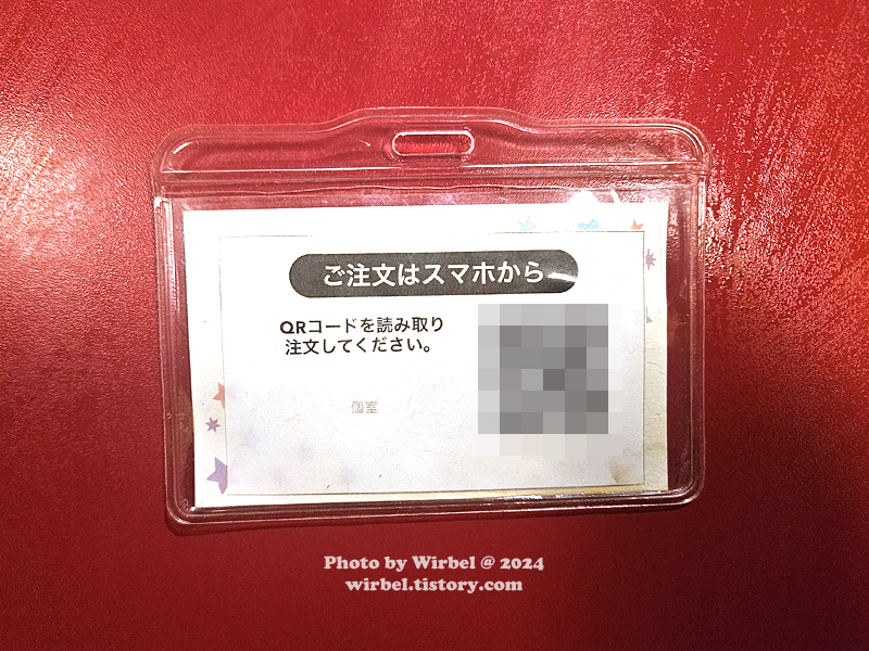 2024년 방문 당시 하카타엔 스키야키 주문은 QR코드를 읽어서 스마트폰 주문할 수 있습니다.