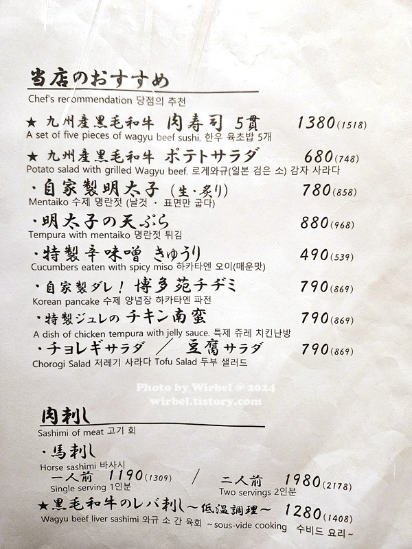 하카타엔 추천 메뉴는 한국어 메뉴도 있습니다.