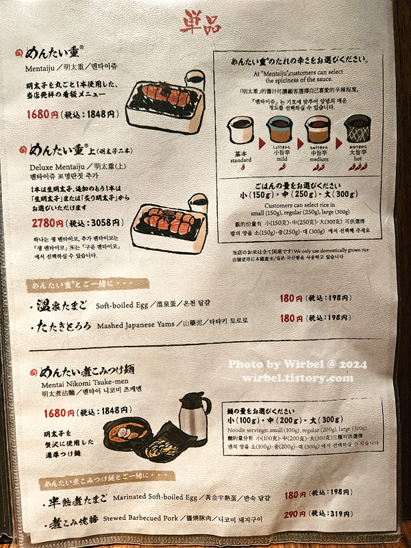 한멘 세트 - 멘타이쥬 + 멘타이 니코미 츠케멘 3,168엔.