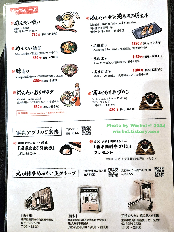 후쿠오카 맛집 원조 하카타 멘타이쥬 정보는 다음과 같습니다.