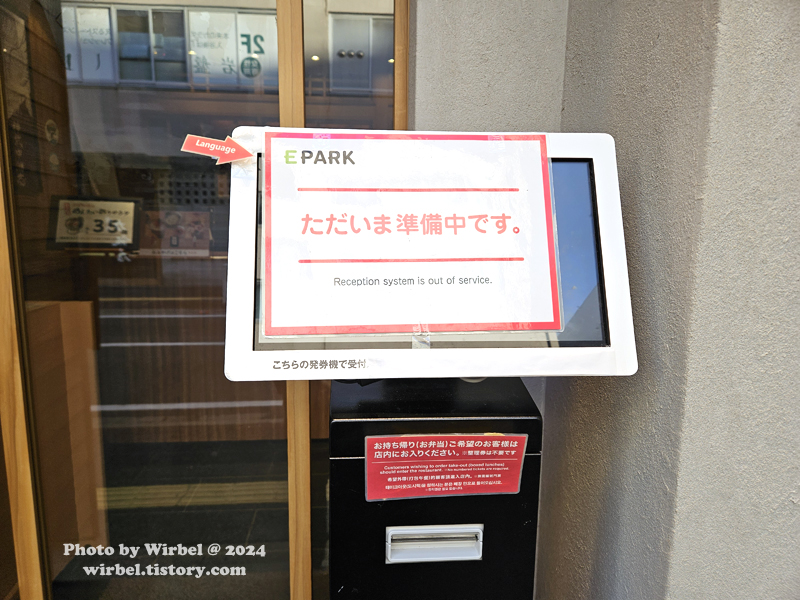 2024년 기준 원조 하카타 멘타이쥬 웨이팅 시스템으로 EPARK 웨이팅 시스템을 사용하는 것 같습니다.