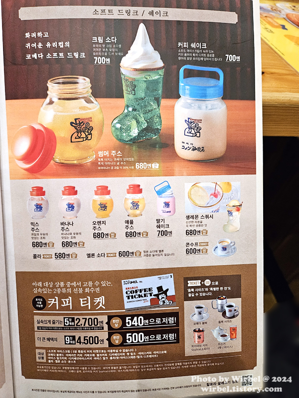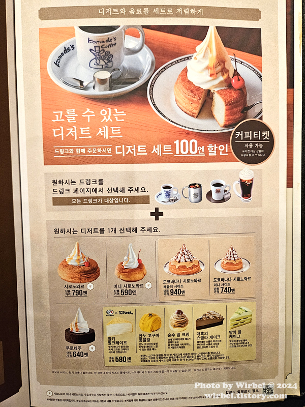후쿠오카 카페 코메다커피 디저트 음료 메뉴 가격.