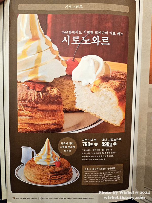 코메다 대표 메뉴 시로노와르 가격.