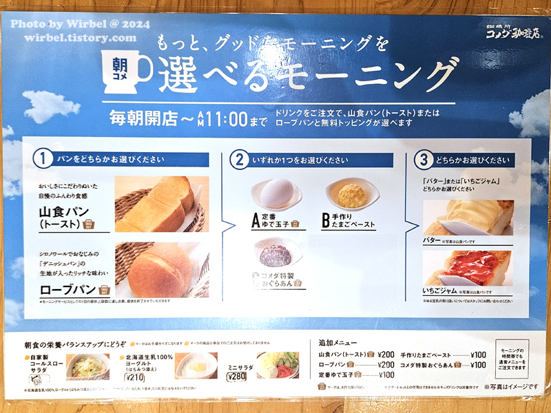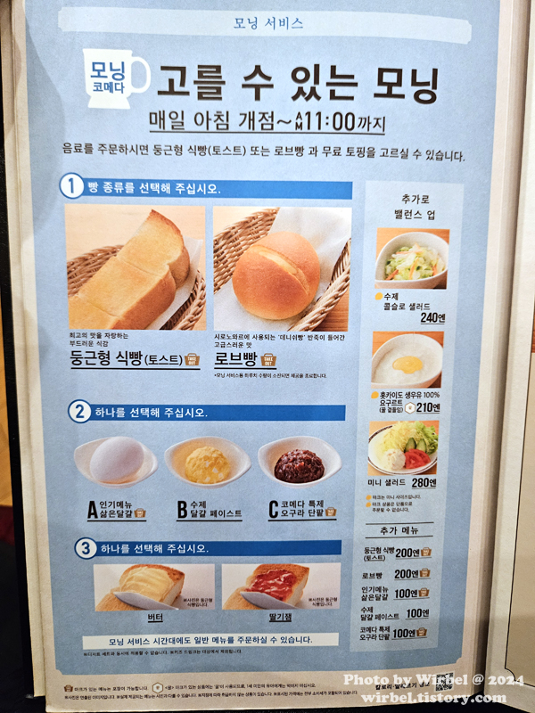 코메다커피 모닝코메다는 오전 11시까지 음료를 주문하면 토스트를 서비스로 줍니다.