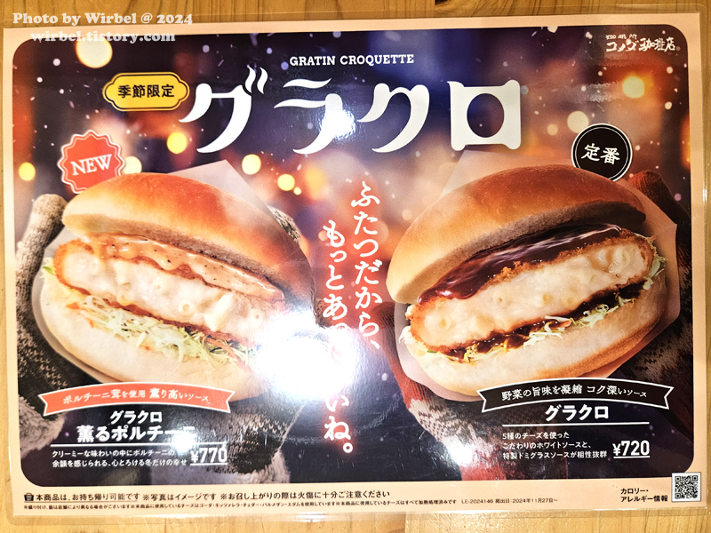 후쿠오카 코메다커피 버거 메뉴 가격.