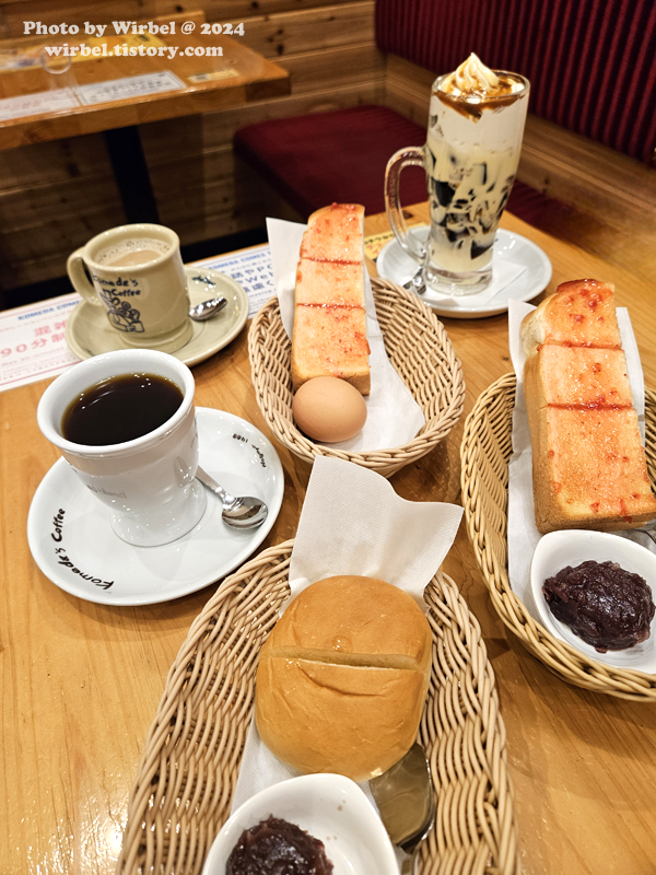 코메다커피가 나고야에서 온 것을 생각하면 오구라 토스트로 버터와 오구라 단팥 조합이 가장 좋은 것 같습니다.