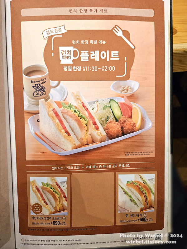 2024년 코메다커피 한국어 메뉴판.
