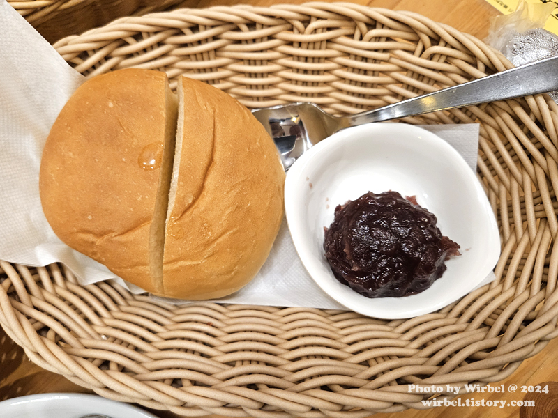 모닝빵 + 버터 + 오구라단팥.