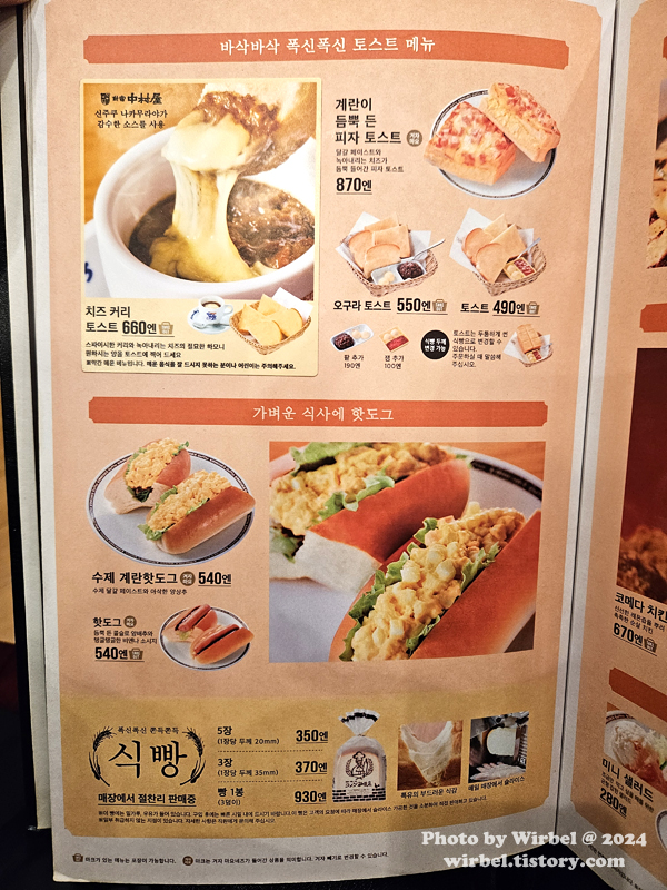 후쿠오카 텐진 코메다커피 샌드위치 메뉴 가격.
