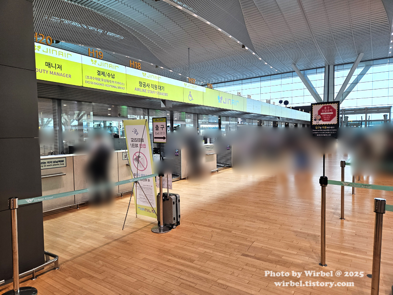 비수기 평일 이른 새벽이라 진에어 체크인 코너는 한산했습니다.