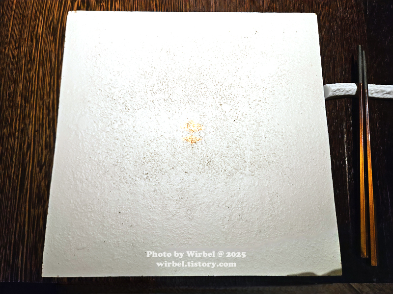 프렌치 레스토랑을 연상케 하는 접시 등 같은 세팅입니다.