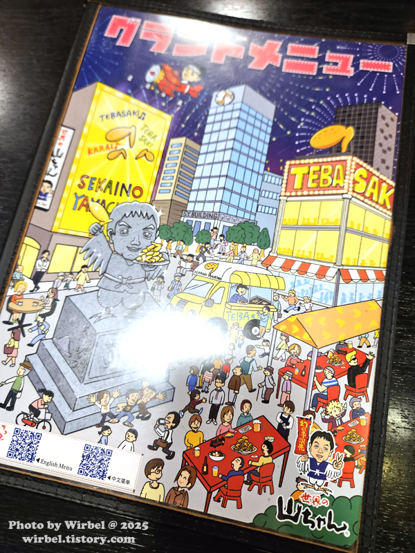 세카이노야마짱 한국어 메뉴판은 없고 영어 메뉴판과 중국어 메뉴판이 있습니다.