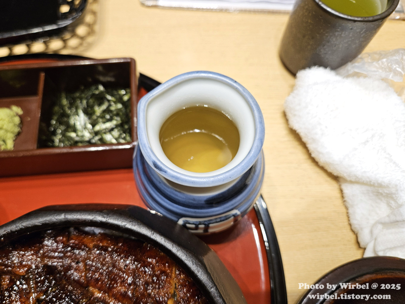아츠타호라이켄 장어는 겉 부분이 얇고 바삭하게 구워졌고 그릴향이 은은하게 납니다.