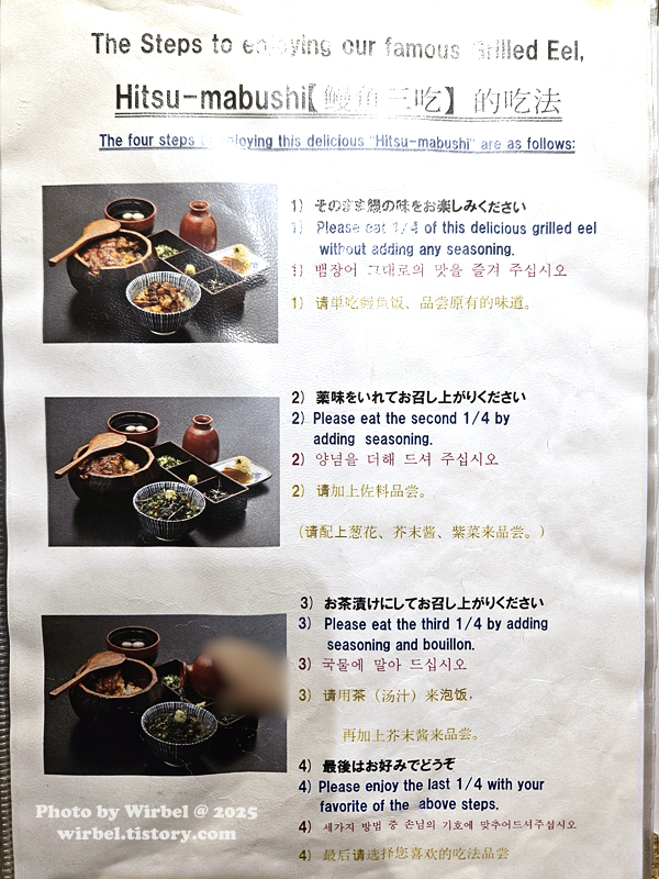 나고야 히츠마부시 아츠타호라이켄 일본어 메뉴판.