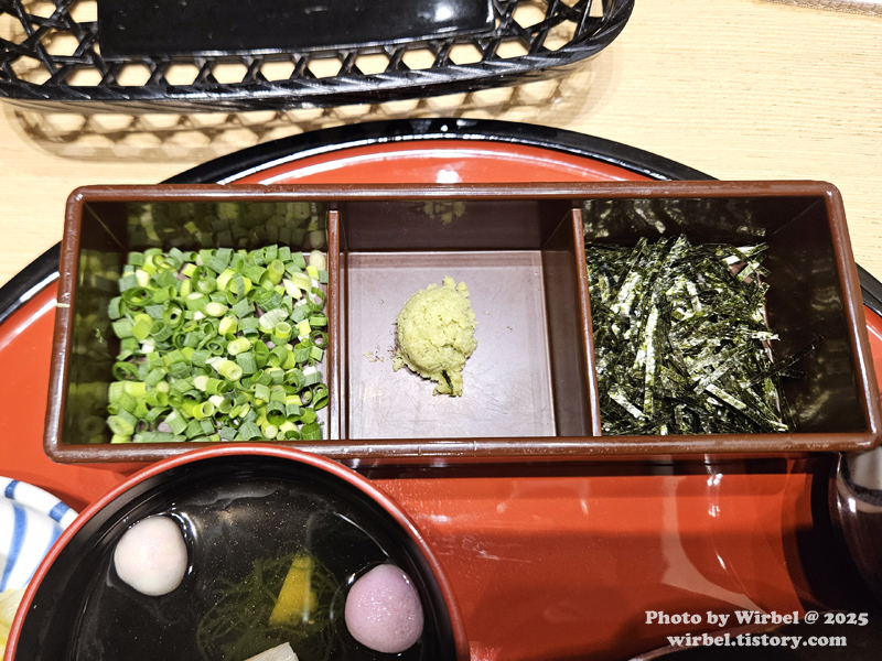 두 번째로 김가루, 파, 와사비를 곁들여서 먹어봅니다.