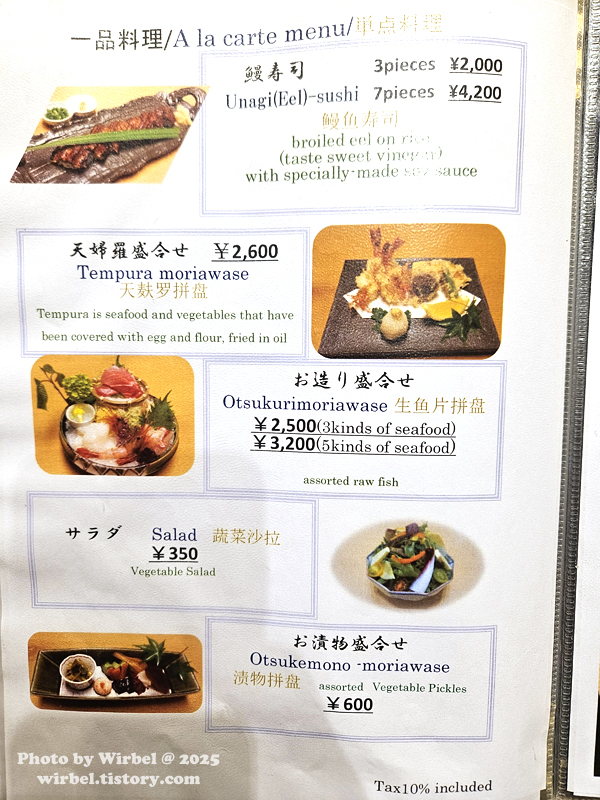 나고야 원조 히츠마부시 맛집 아츠타호라이켄 일품 메뉴 가격.