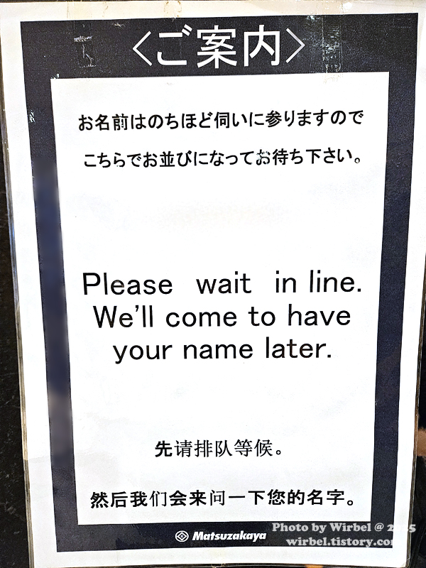 10:30 마츠자카야 백화점 오픈하자마자 10층으로 올라가서 5번째로 웨이팅 합니다.