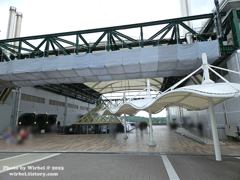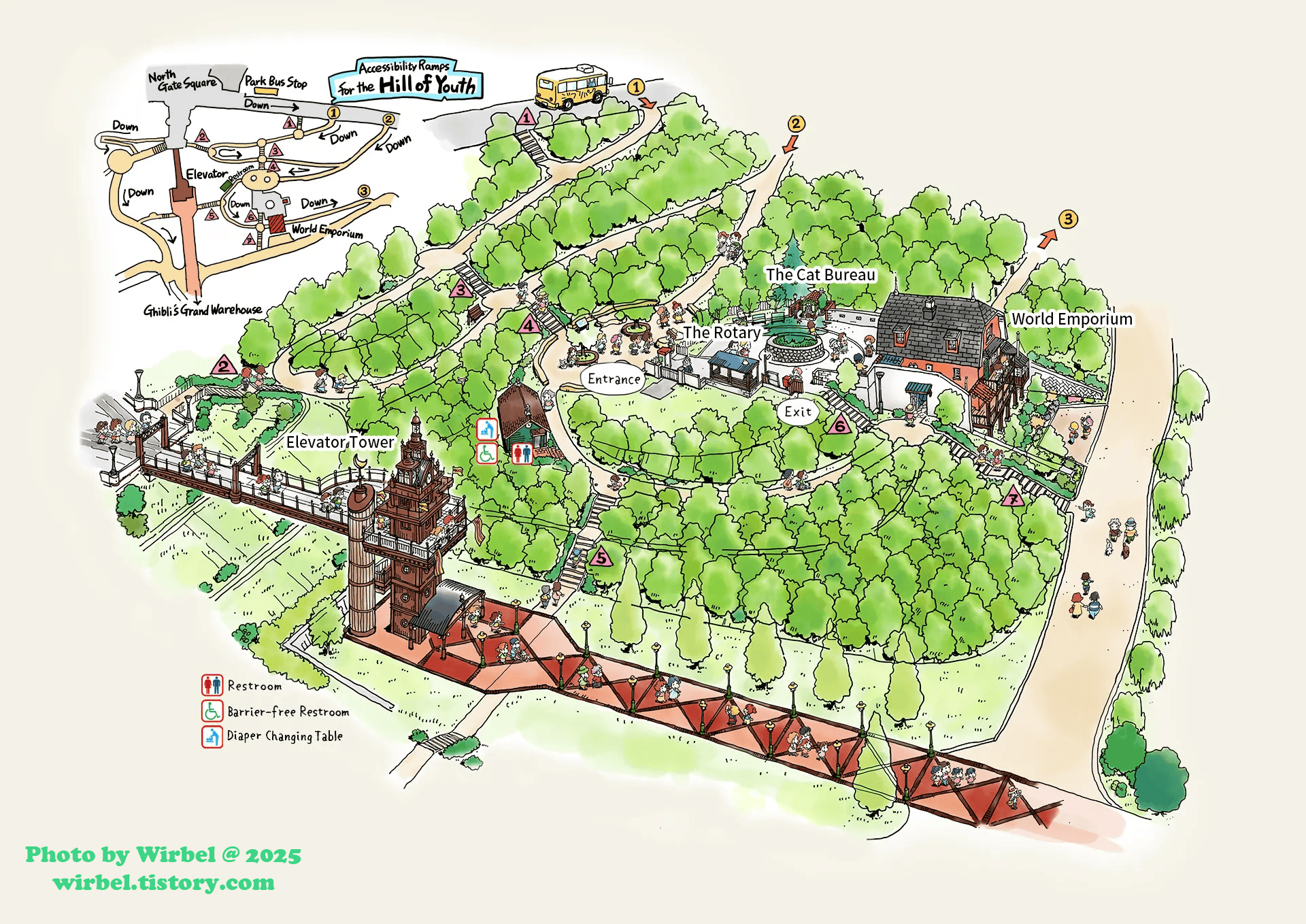 엘리베이터타워 옆이 귀를 기울이면 애니메이션 테마구역인 청춘의언덕입니다.