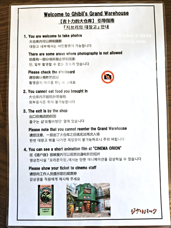 지브리 대창고 입장할 때 받은 영화표를 주고 입장하면 됩니다.