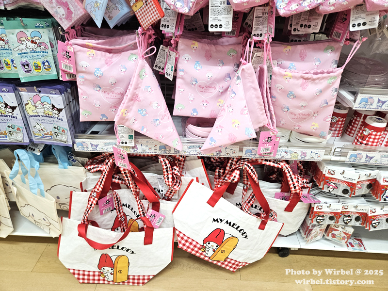 마이멜로디, 시나모롤 등 다양한 에코백이 있습니다.