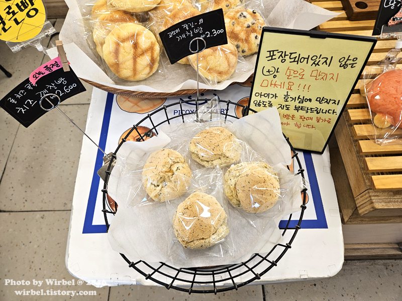 피코야 베스트 5는 멜론빵, 거북이멜론빵, 야키소바빵, 명란소금빵, 휘낭시에, 콘치즈, 치아바타입니다.