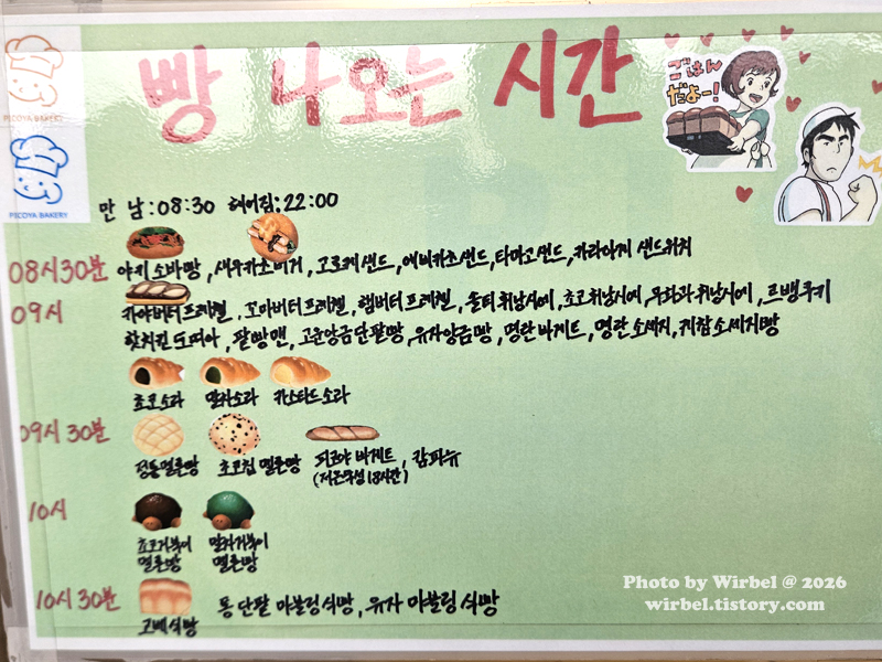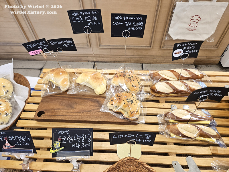 피코야 추천 메뉴로는 소금빵, 치아바타, 바게트, 구리볼, 카스텔라입니다.