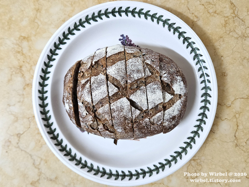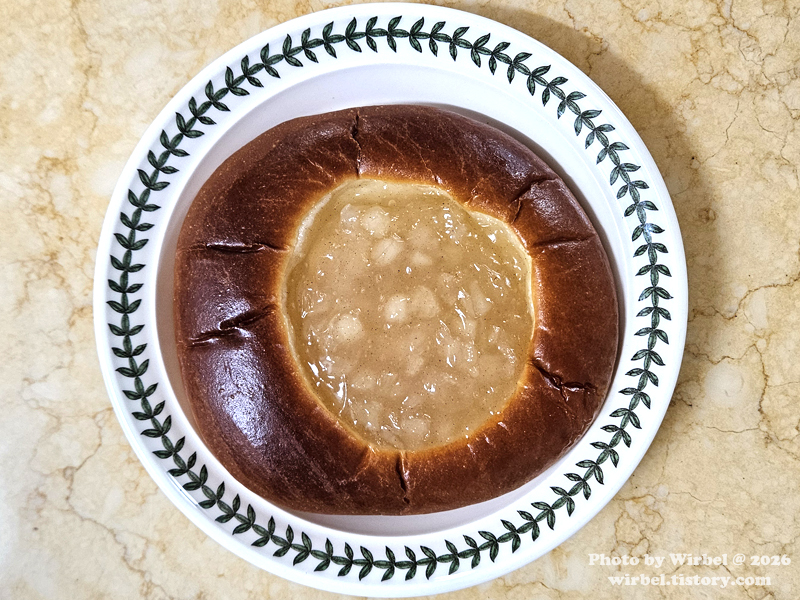 찹쌀떡에 있는 앙금처럼 달달한 팥과 바이 들어가 있는 깜빠뉴입니다.