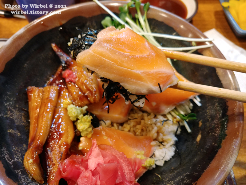 만푸쿠 사케동 가격은 나가지만 그만큼 푸짐한 양을 보여주고 있습니다. 굿~~