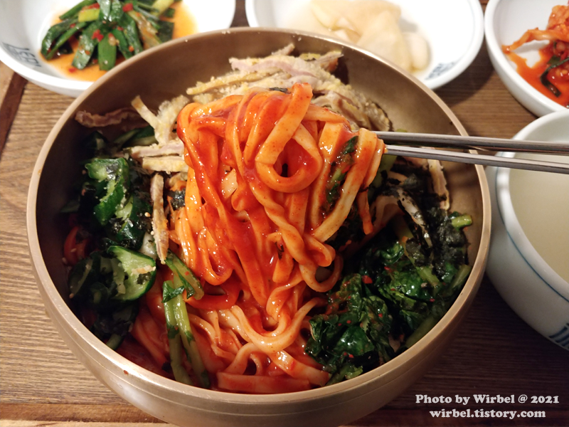 개인적으로 비빔국수는 맵기만한 것이 아니라 매콤달콤 혹은 매콤고소한 느낌이 있는 것을 선호합니다.