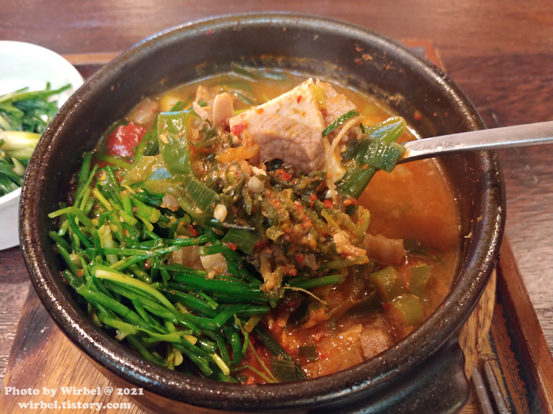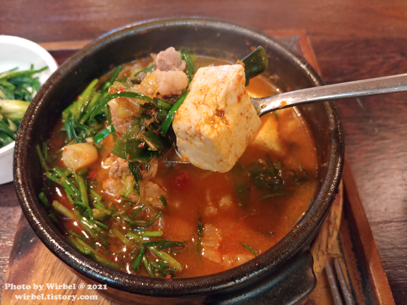 돼지고기 양이 아주 엄청 많다는 것은 아니지만 보통 사이드로 나오는 된장찌개보다는 많이 들어 있습니다.