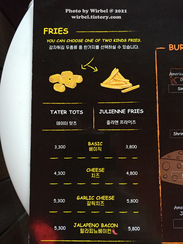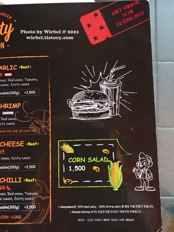 서울숲 버거 맛집 제스티살룬 메뉴 가격.