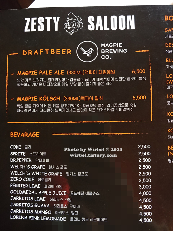 제스티살룬 주류 음료 가격.