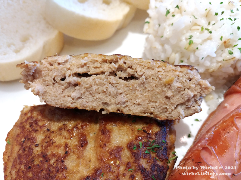 공장에서 만드는 패티이다 보니 패티 사이 약간 뜨는 게 있지 않을가 싶기도 합니다.