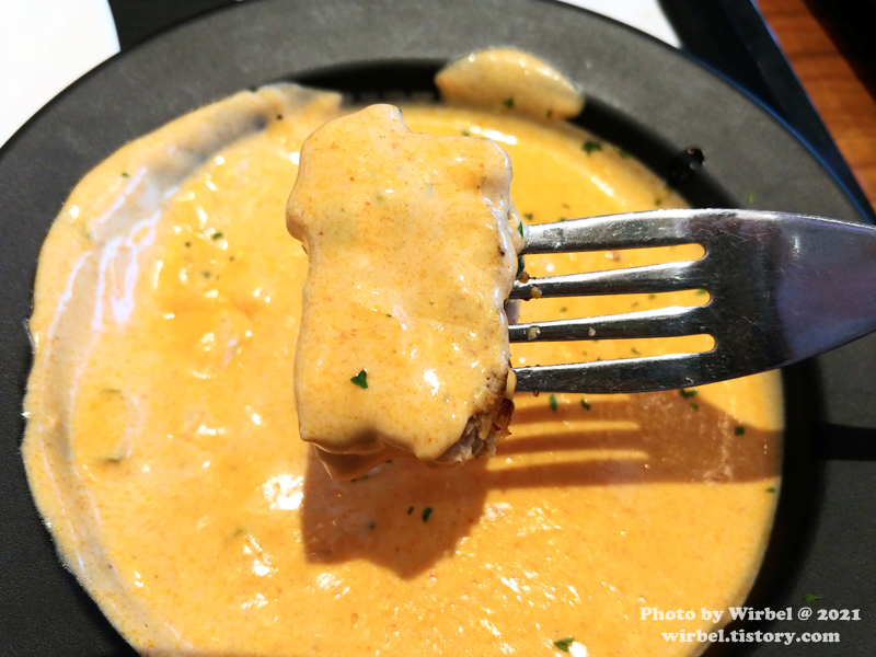 매콤하면서도 크리미한 투움바 소스와도 잘 어우러지는 함박입니다. 츄릅~~