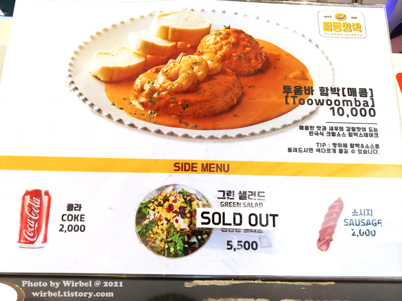 <투움바 함박 스테이크>, 가격: 10,000원.