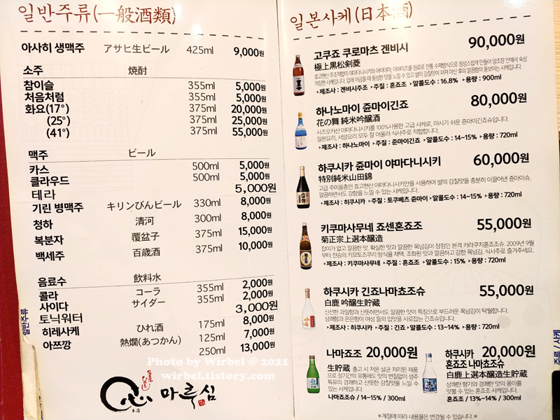 마루심 주류 가격.