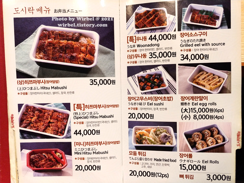 마루심 장어 도시락 메뉴 가격.