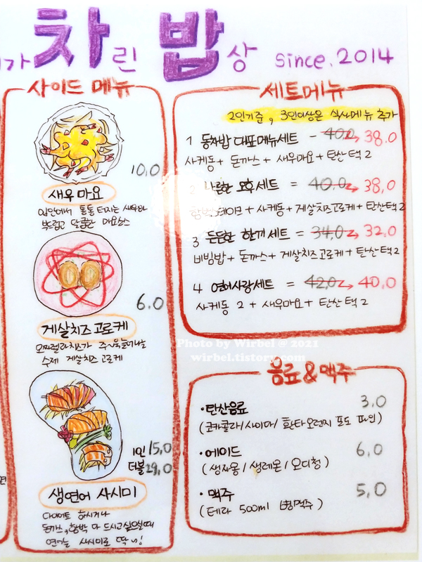 비어벨이 다녀온 맛집 & 여행(wirbel.tistory.com)의 비어벨입니다. 후기 남길 때는 긍정적인 시각으로 남기는 편입니다. ^^ 방문했던 시기에 따라 맛, 가격, 서비스 등이 지금과 다를 수 있는 부분을 참고하시고요. 음식점에 대한 생각은 지극히 주관적이니 맛집 후기는 참고만 하시는 거 다들 아시죠?! ^^ |