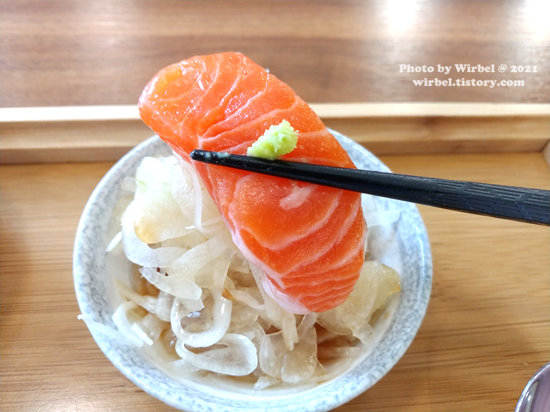 연어 밑에는 양파와 간장이 있는데 양파 일부는 살짝 쓴맛이 있었습니다.
