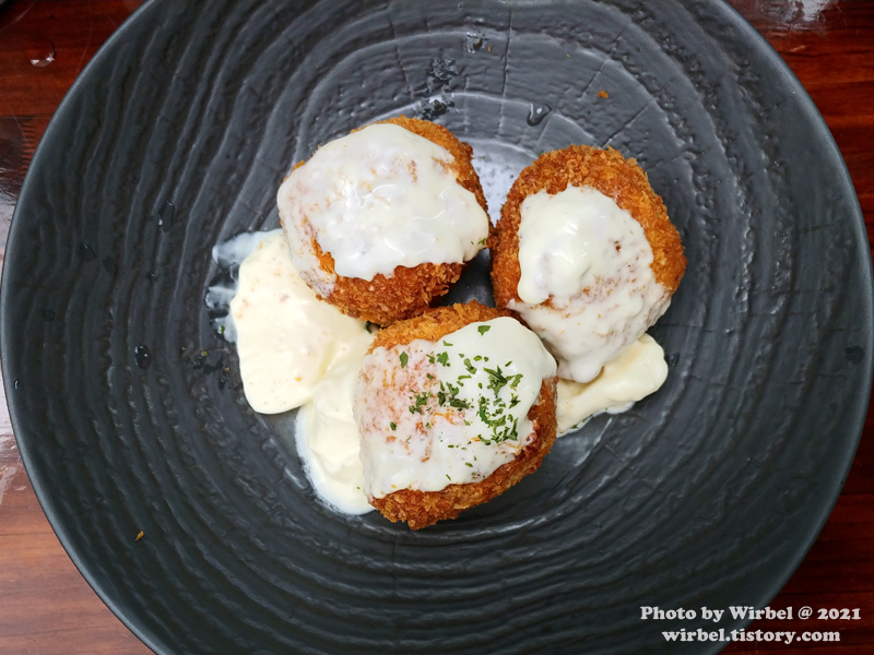 아란치니 3개에 트러플 소스가 곁들여져서 나옵니다.