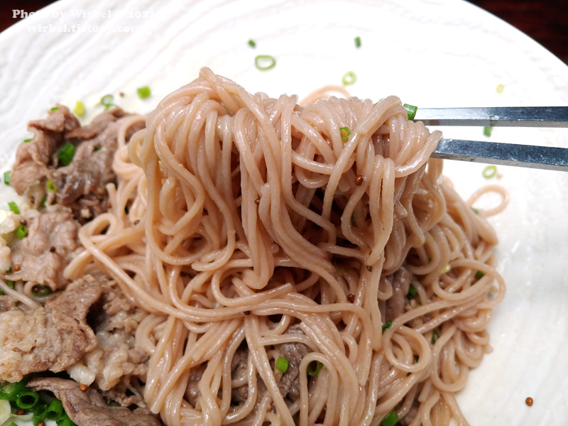 면 아래에는 들기름이 풍부하게 있고 토핑으로 차돌박이, 쪽파, 들깨가 얹어져 있습니다.