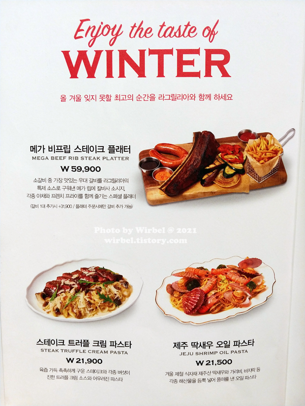 라그릴리아는 시즌마다 메뉴를 출시하고 있습니다.